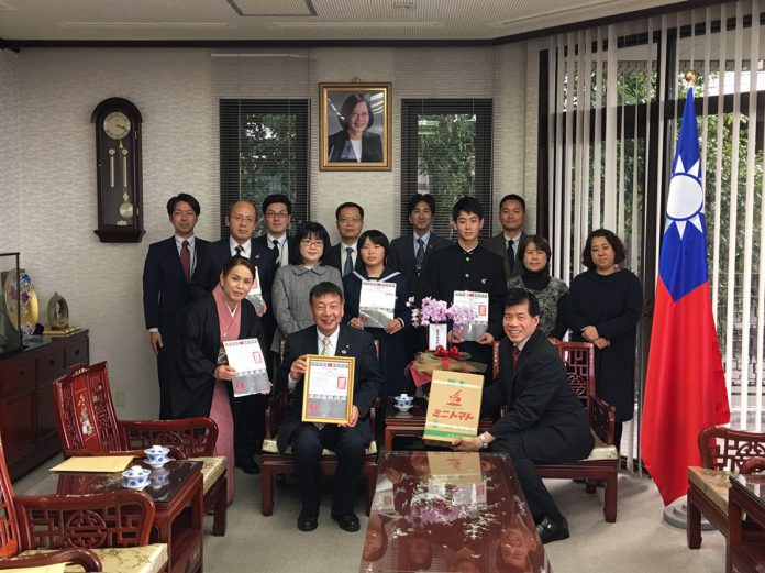 台北駐福岡経済文化辧事處(福岡総領事館)で12月25日「中華民国(台湾)第49回世界児童画展」入賞者の表彰式が行なわれ、九州・山口地区から応募して銅賞及び佳作に輝いた5人を代表して、2人の学生と保護者、学校関係者など10人が同處を訪れ、陳忠正総領事からお祝いの言葉と賞状を受け取った。