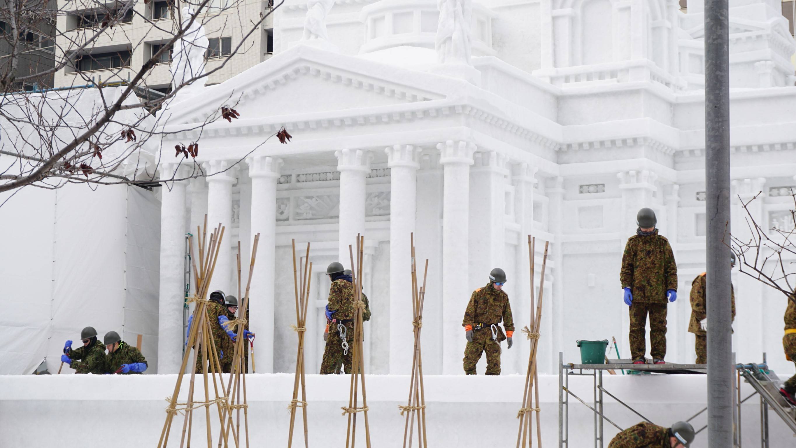 今年雪祭時逢日本與芬蘭建交一百周年,自隊特別打造芬蘭赫爾辛基大教堂1/3版的雪雕,自衛隊也製作出虛擬歌手初音未來和以樂團形式的聲優組合「Poppin’Party」中戶山香澄的冰雕,夜晚時在燈光和音樂的交織下,讓大家都能沉浸在她們的歌聲和搖滾樂隊中。