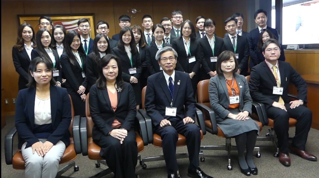 次に訪問した領事館(台北駐福岡経済文化辦事處)では、陳忠正総領事 (處長)、洪臨梂部長、李杰宏課長、蔡宜均課長のほか、大勢のスタッフが研修生を出迎えた。