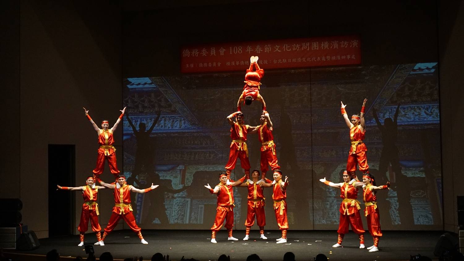 這次由台灣戲曲學院校長張瑞濱帶領十二個台灣雜技團演員組成訪團,帶來各式各樣的演出,不論是持竹竿耍盤、穿跳技巧、足上特技、陣頭、疊羅漢等,將台灣在地多元文化特色融入其中,讓台下的僑胞都大呼過癮,不停鼓掌。