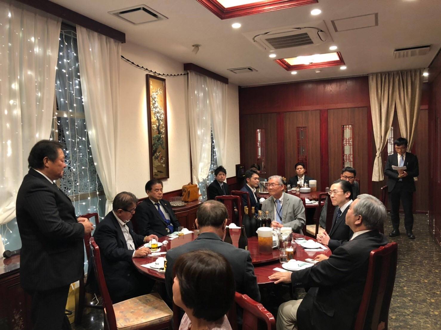 浦添市議會議長島尻忠明領導乾杯時表示,台沖在經貿、文化及體育等各項交流頻繁,有目共睹,促成沖繩各地方議會相繼成立友台議聯,也很期待本次訪台,盼以此次與台中市議會交流為契機,增強與台灣各地方議會關係。