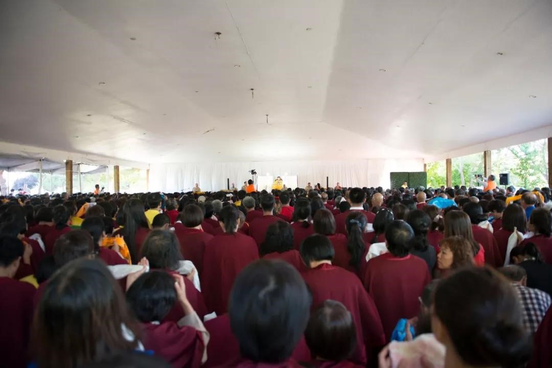 世界仏教本部責任者の莫知(モーチー)尊者は開会の辞でこう述べた:「まず、我々は偉大なアメリカに感謝しなければなりません。5月15日、南無ドルジェチャン仏第三世の誕生日を特別に祝すために、アメリカの国旗がワシントンD.C.で掲揚され、青空に翻りました。アメリカ議会では掲揚に際して『H.H. ドルジェチャン仏第三世の生誕記念日に、全ての仏教の最高指導者である彼への敬意を込めて、このアメリカ国旗は国会議事堂の上に掲揚される』との言葉が記されました。今、皆さんが目にしている、青空に翻る旗が、国会に掲揚された国旗です。南無ドルジェチャン仏第三世の事務所に送り届けられ、保管されていたものなのです。」
