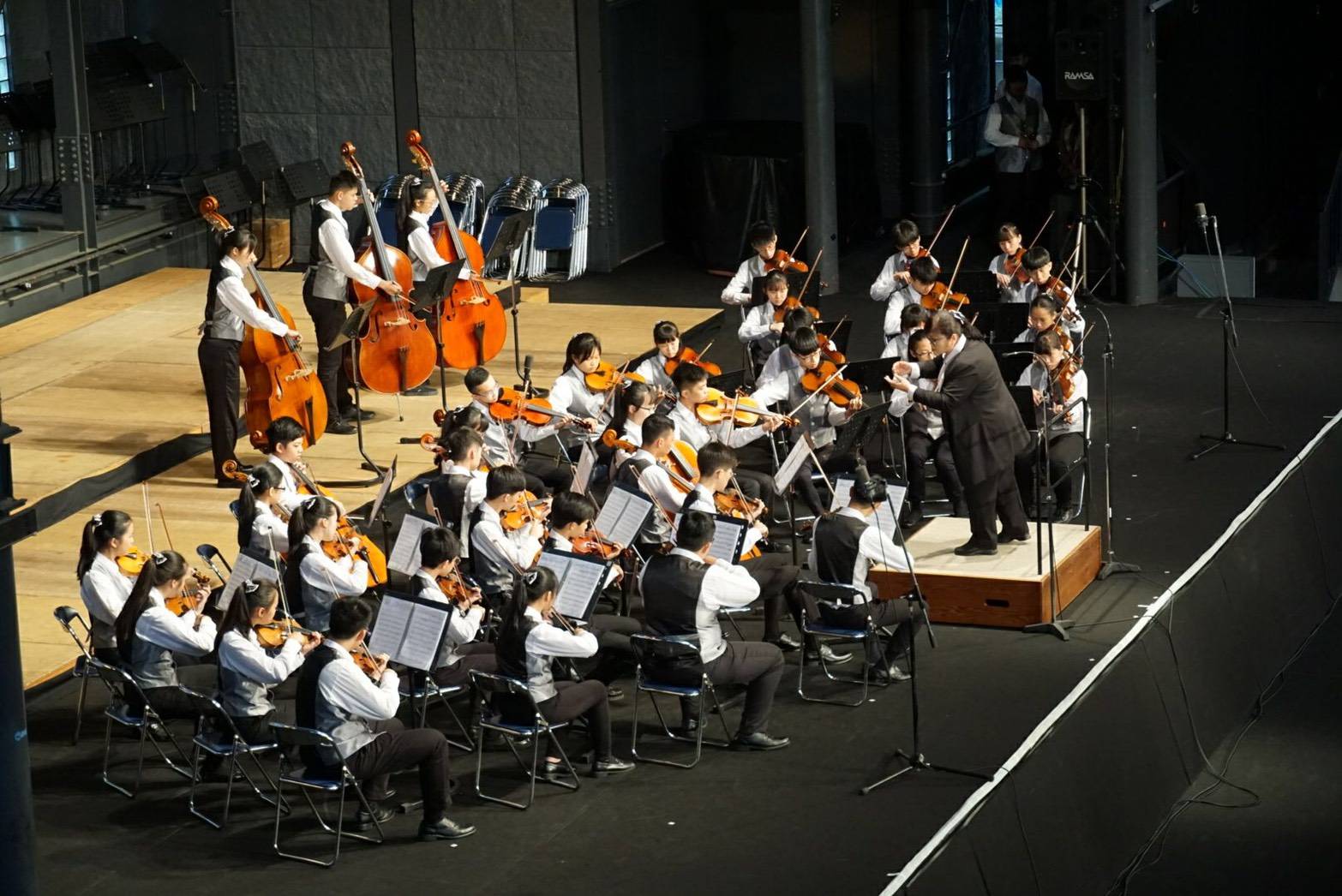新北市新莊國中弦樂團成立於民國九十年,不定期會參與社區的活動及表演,也秉持著「音樂即是生活的一部份」理念,積極推廣分享音樂,這次活動由校長呂秋萍、指揮曾媺帶隊,赴日進行五日的交流表演,除了河口湖外,也前往音樂盒美術館演出,以及參訪君津市體驗茶道文化。