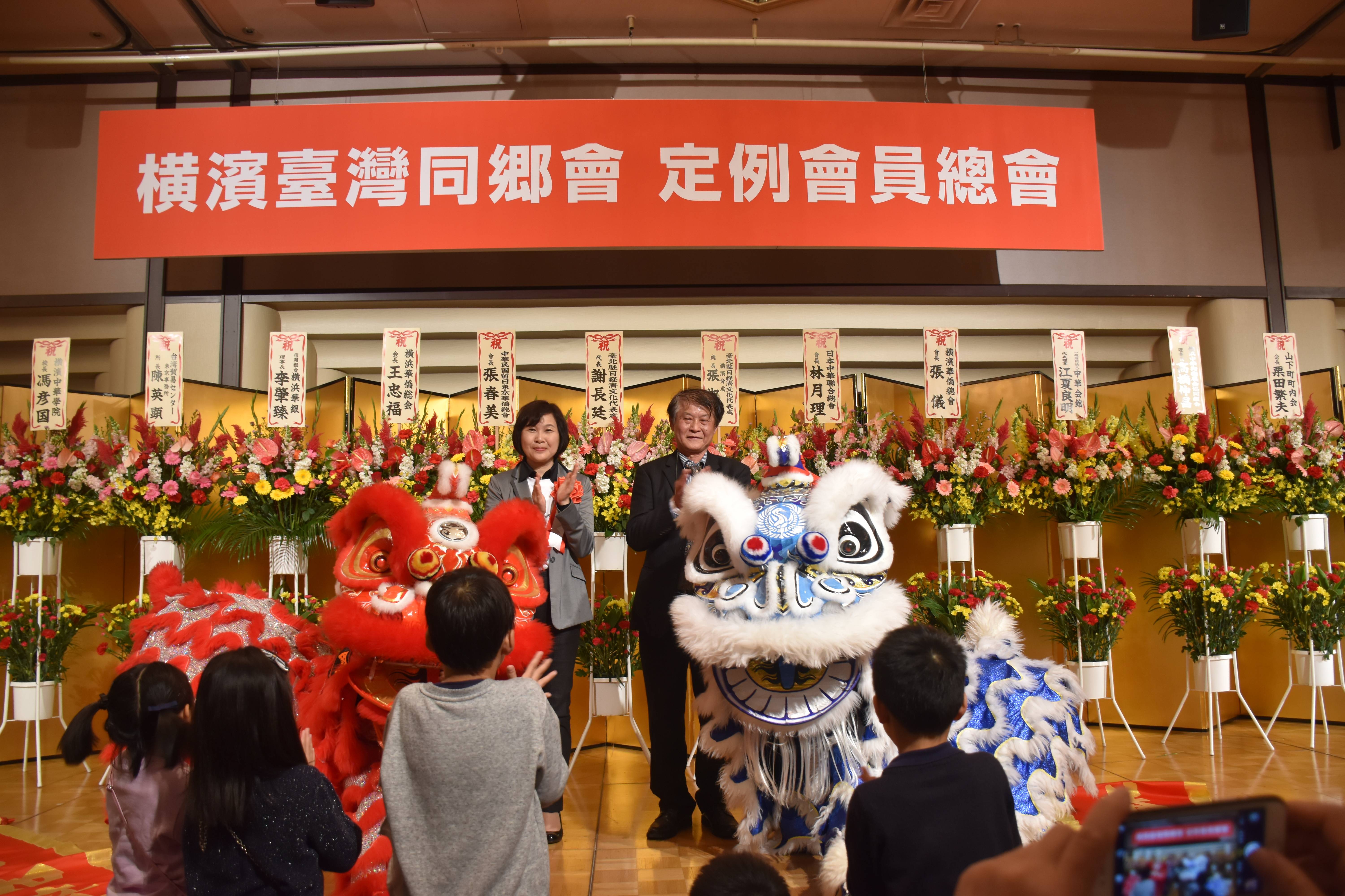 【橫濱/採訪報導】橫濱台灣同鄉會每年的定例會員總會於十一月二十三日在玫瑰飯店舉行,橫濱辦事處長張淑玲及橫濱華僑總會長張儀皆受邀出席,同鄉會會員也攜家帶眷參與聚會,現場聚集約三百多人,此外還有歌唱、舞蹈及舞獅表演來炒熱現場氣氛。