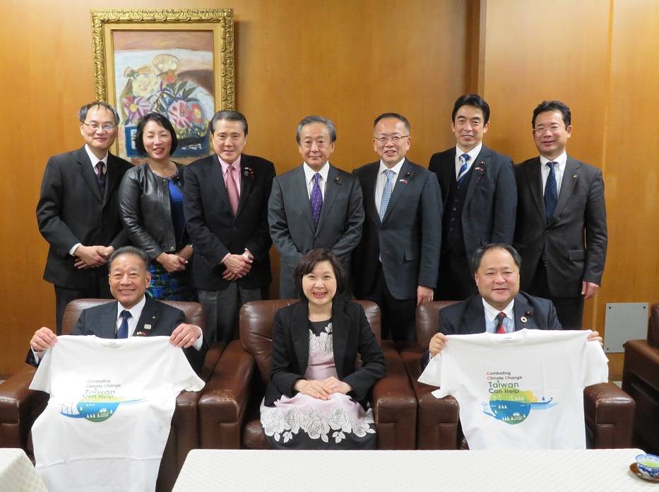 張淑玲也贈送橫山正人、谷田部孝一由橫濱辦事處所印製的「Combating Climate Change, Taiwan can help」T恤及說帖,議長橫山正人等人也與張淑玲同持T恤橫影並表示支持。