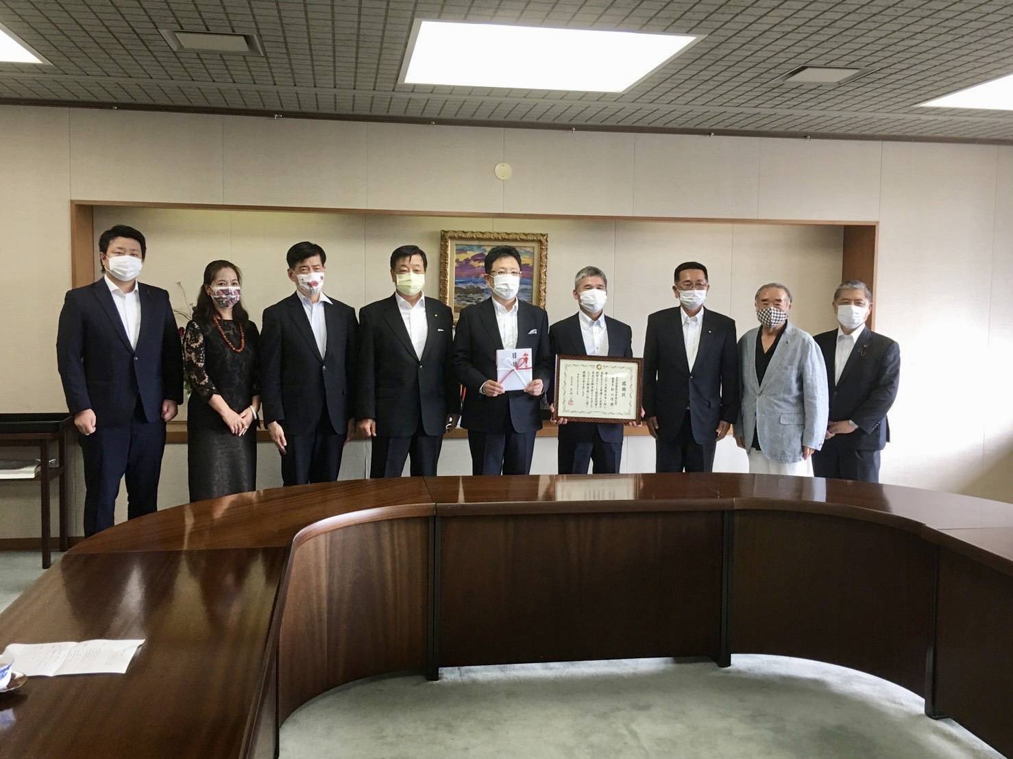 それを受けて大西市長は「医療現場や災害時の避難所で活用したい」と謝辞を述べ、感謝状を手渡した。