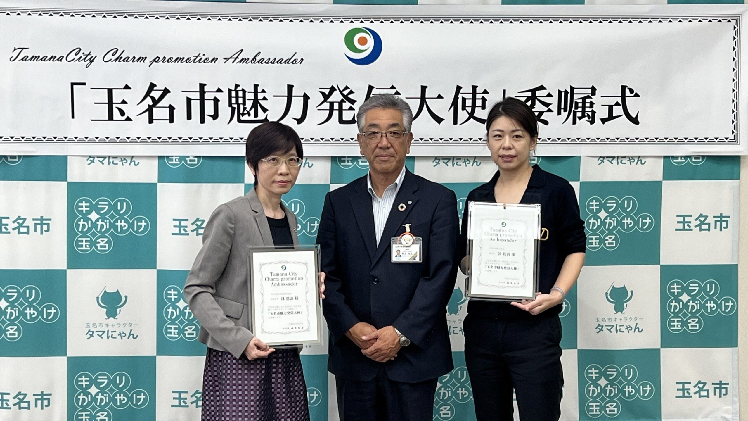 熊本縣玉名市於10月25日舉行了「魅力發信大使」委任儀式,正式授予日本臺灣文化藝術交流會名譽會長林慧諭女士及居住於玉名市的臺灣企業家彭筱娟女士「魅力發信大使」的榮譽。
