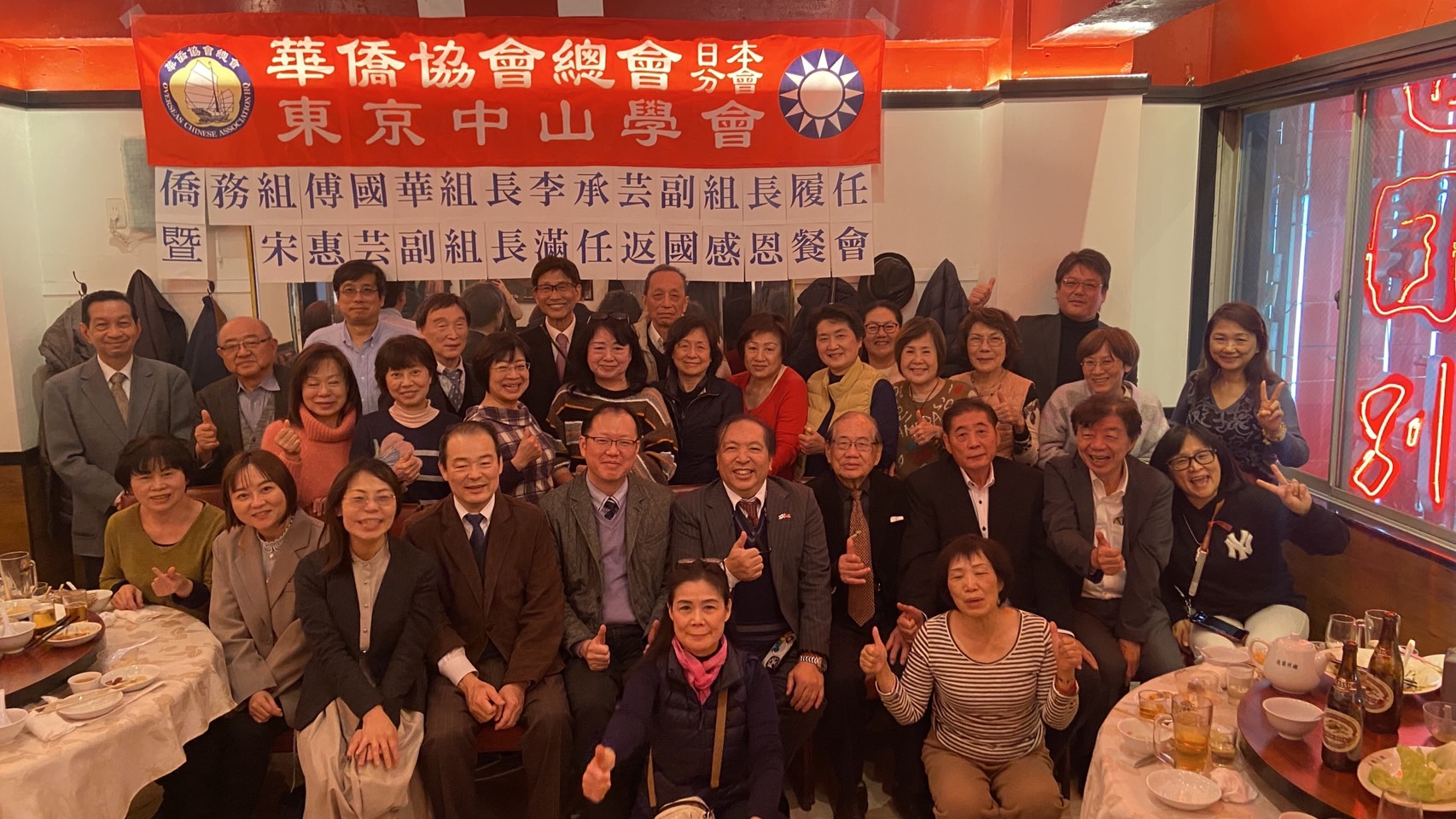 僑協日本分會與東京山學會也特別準備了禮物贈送給新上任的正副組長及將離任的宋慧芸副組長,並由莊海樹博士帶領大家進行乾杯儀式,宣告餐會正式開始。雖然一開始因為歡送顯得場面離情依依,但很快在僑胞們的熱情下,讓場面變得十分溫暖熱鬧,將寒冬和道別的氛圍完全驅散,取而代之的是歡笑與祝福的聲音,大家都期待著未來的再次相聚。