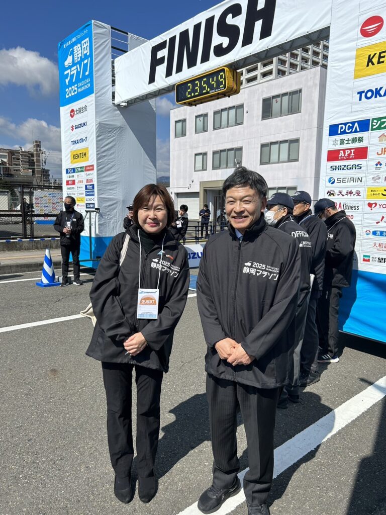 【橫濱/綜合報導】駐橫濱辦事處張淑玲處長本(3)月9日應邀出席靜岡馬拉松開幕式及頒獎典禮,與靜岡市難波喬司市長、馬拉松執行委員長暨靜岡市商工會議所會頭岸田裕之(靜岡瓦斯公司社長)、觀光交流文化局望月哲也局長、靜岡田徑協會西島昭男會長及靜岡市體育協會小長谷重之會長等人一起上台參加起跑式。