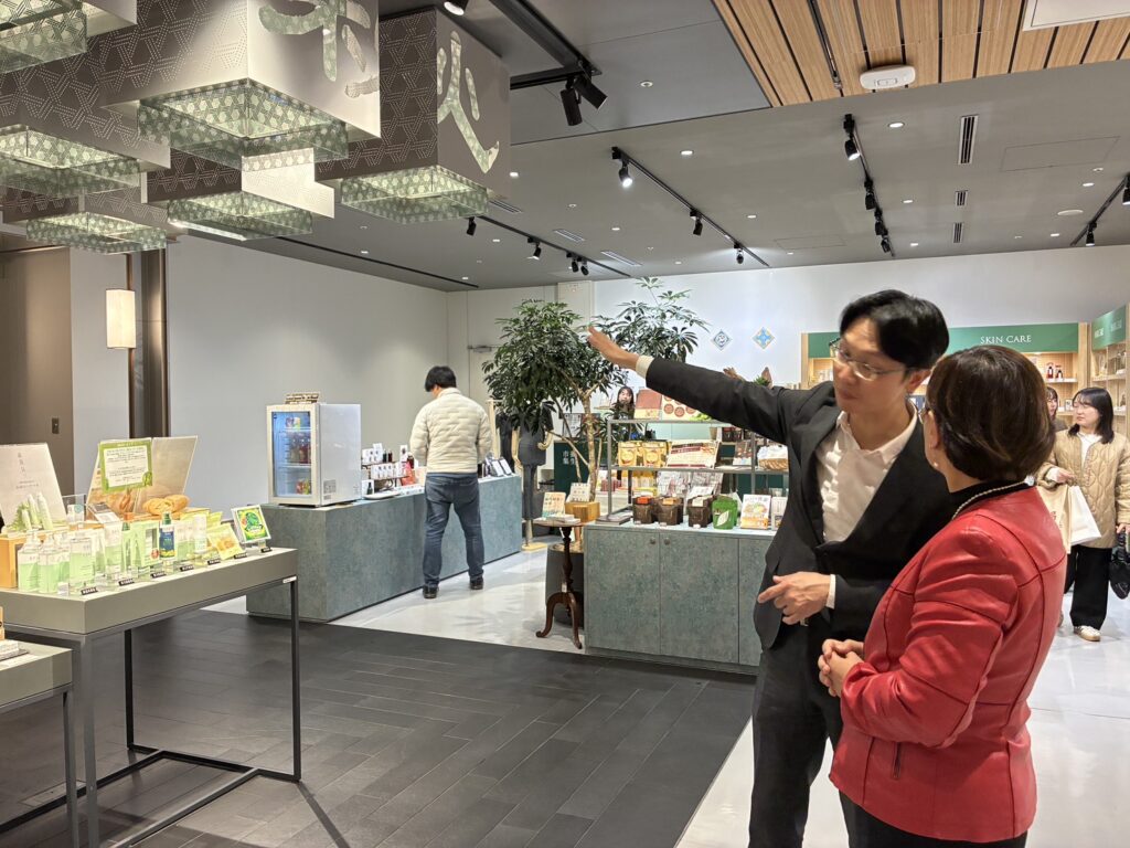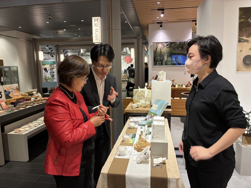 座談期間,HAPPY LEMON負責人林太一分享店鋪推動臺日交流的經驗,透過臺灣茶文化吸引日本民眾認識臺灣,並將店面打造為文化交流據點。隨後,他陪同徐佳青參訪誠品生活日本橋,介紹館內空間規劃及融合臺日文化特色的設計理念。