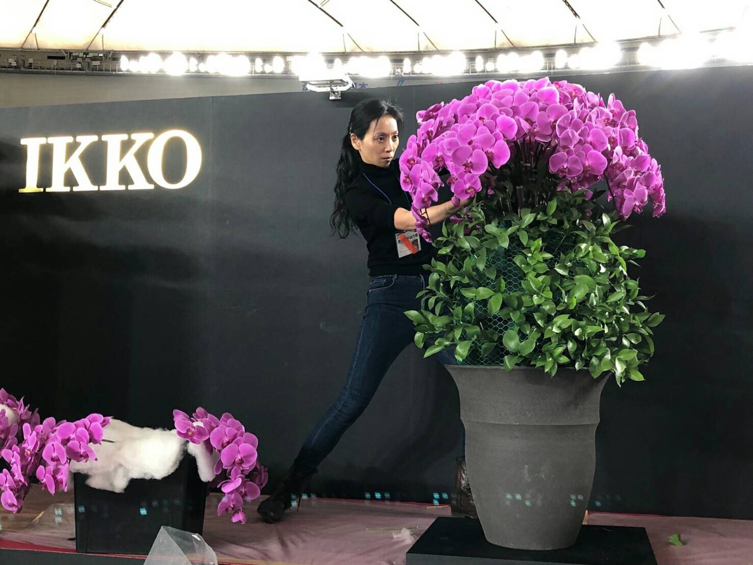 「IKKOのオーキッドルーム」に展示されている蘭のディスプレイは台湾の「紅鉅国際有限公司」総裁の楊淑文女史のデザインによるもの。このコーナーに飾る蘭の花のデザイナー選定については、出展を要請されたNHKの担当者にフラワーデザイナーの候補者リストを提供してもらった。そのファイル資料を見て、一目で楊女史の作品に目が入った。特にフォルム、色の選別が印象的だった。